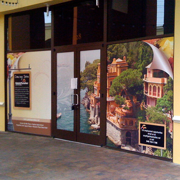 Window graphics transform your storefront into a powerful marketing tool. Printed on high-quality vinyl with UV-resistant inks, they grab attention while holding up to sun and weather. The most popular options include perforated one-way vision film, opaque vinyl, or frosted designs for privacy. We can produce graphics to fit any window size, from small decals to full storefront installations. Easy to apply and remove, window graphics are perfect for promotions, branding, or simply enhancing curb appeal. Whether you want bold, full-color coverage or subtle frosted accents, we’ll create a professional look that makes your business stand out. Need help choosing the right material or sizing for your windows? Call us and we’ll guide you to the best option and provide a fast quote.